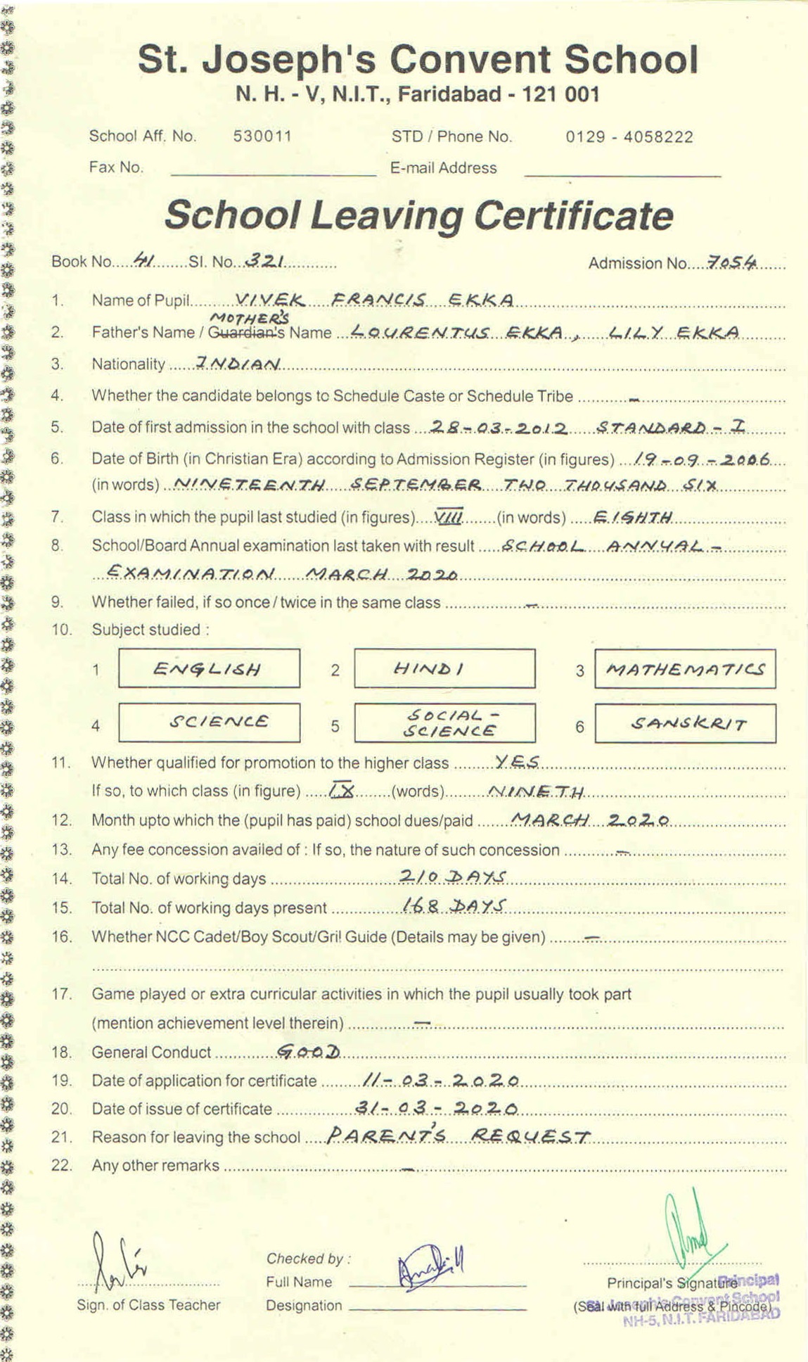| 7054 | Vivek Francis Ekka | |