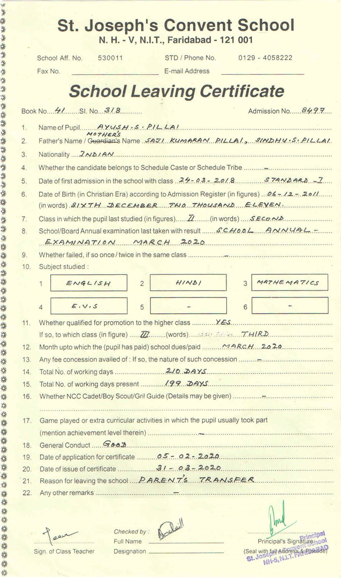 | 8497 | Ayush .S. Pillai | |